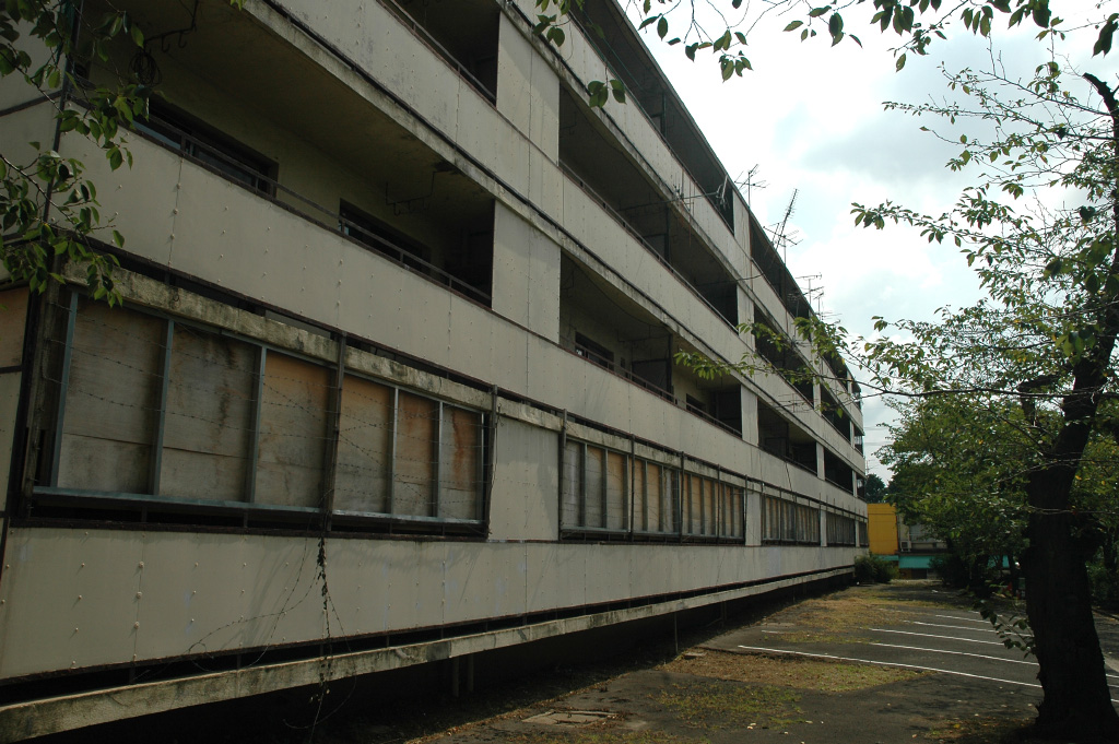 1階部分が塞がれてしまった棟。なんとなく港に停泊する豪華客船?のようにも見えます。 このようにすでに住民が退去してしまった棟も多く、建替え間近の状況でした。